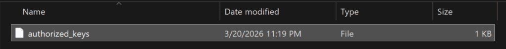 2- Manually copy the ful contents in “id_ed25519.pub” in XPS13 to “C:\Users\[username]\.ssh\authorized_keys” in AI tower.