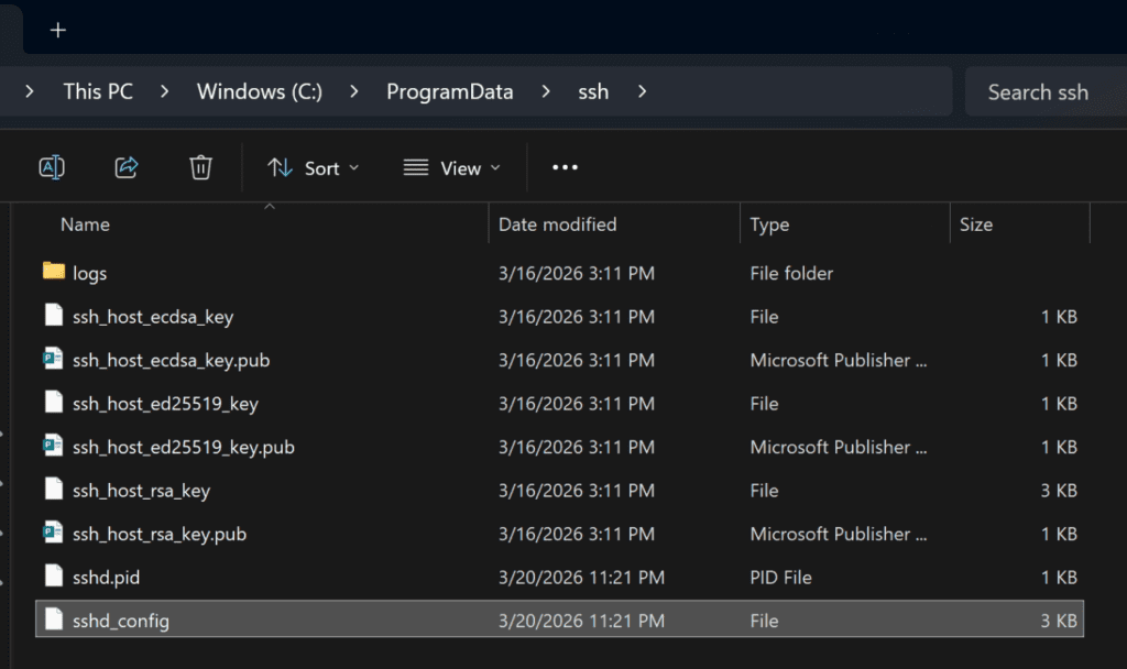 AuthorizedKeysFile PROGRAMDATA/ssh/administrators_authorized_keys